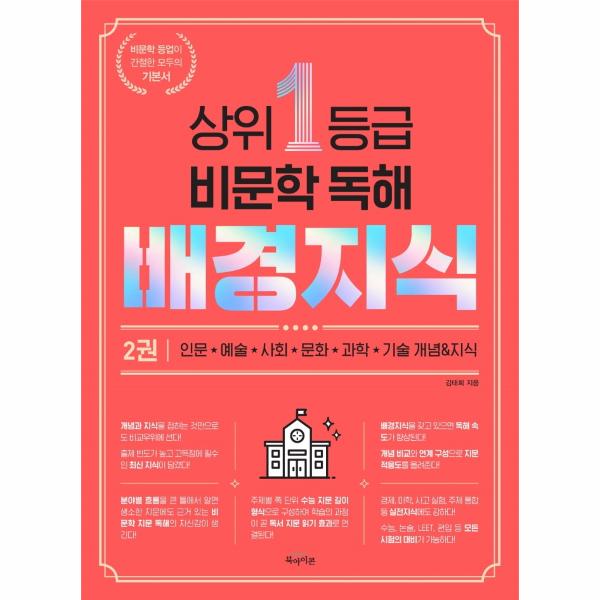 수능 국어는 독서 전 분야에 대한 상식 이상의 배경지식을 요구합니다. 글에 대한 독해 속도는 이러한 배경지식의 수준에 따라 좌우된다고 할 수 있습니다. 따라서 독서 영역 분야별 개념과 지식을 익혀 독해 속도를 늘리는 것이 중요합니다. 해당 주제에 대한 지식을 어느 정도 갖고 있으면 지문이 훨씬 많이 보이고 해석하기가 수월해집니다. 이 책은 인류사 수천 년 동안 제시되고 축적된 광활한 지식과 심오한 사상을 주제별 쪽 단위 수능 지문 길이 형식으로 구성하여 학습의 과정이 곧 독서 지문 읽기 효과로 연결될 수 있도록 하였습니다. 이를 통해 다른 어떤 핵심 개념과 맞닥뜨리더라도 그 의미를 어렵지 않게 파악할 수 있을 것입니다.