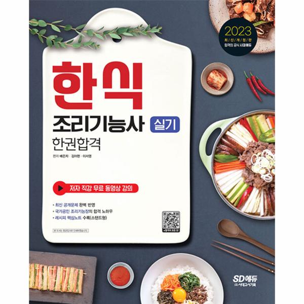 2023년 시행되는 한식조리기능사 실기 31개 공개과제의 내용을 한 권에 모두 담았습니다. 실제 시험시간에 맞추어 조리할 수 있도록 무료 동영상 강의를 제공하여 초보자도 쉽게, 한번에 합격할 수 있도록 하였습니다. 국가공인 조리기능장 배은자 교수님이 특별히 전하는 합격포인트는 큰 도움이 될 것입니다.