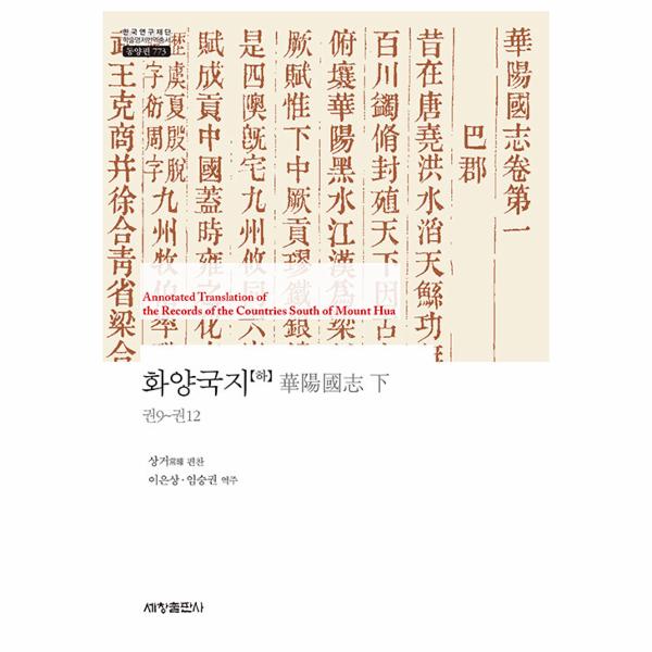 동진(東晉, 317~420 때 상거(常, 대략 291~361가 편찬한 《화양국지(華陽國志》는 현존하는 중국 최초의 지방지(地方誌이다. 이 책은 신화의 시대에서 시작하여 동진 영화(永和 3년(347에 이르기까지 지금의 사천(四川, 운남(雲南, 귀주(貴州, 감숙(甘肅, 섬서(西, 호북(湖北 지역의 역사, 정치, 군사, 문화, 풍속, 인물 등 비교적 풍부한 중국 서남 지역의 고대 민족 사료를 보존하고 있다. 따라서 해당 지역과 민족의 역사와 문화뿐만 아니라 이 지역의 지리, 정치사, 경제사, 민족사를 연구하는 데 사료적 가치가 매우 높은 텍스트이다.