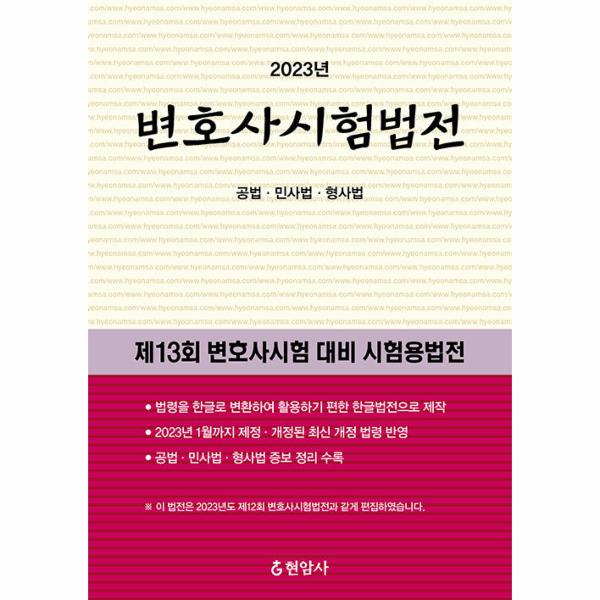 법무부의 변호사시험용 법전이 2022년 11월 7일 당시 공포·시행되는 법령을 기준으로 발행하여 이후 공포된 개정 법령을 반영하지 못하였으나, 본 『법전』은 이를 모두 반영하였다.