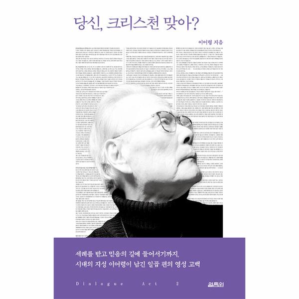 ‘이어령 대화록’ 두 번째 책이 출간되었다. 작년 1월, ‘이어령 대화록’ 제1권 『메멘토 모리』로 삼성 故 이병철 회장의 스물네 가지 질문에 답하며 “팬데믹으로 고통 받는 사람들에게 희망의 메시지”를 전한 시대의 지성 이어령. 제2권 『당신, 크리스천 맞아?』에서는 그가 “세례를 받고 믿음의 길에 들어서기까지”의 과정과 신앙인으로서 변화된 삶, 그리고 생명력을 잃고 변화하는 시대 속 우리가 나아가야 할 방향에 대해 제시한다.