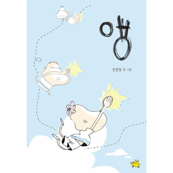 『앵』은 모기를 잡는 이야기이지만 특이하게도 모기의 모습이 직접 등장하진 않습니다. 모기와 비슷하게 생긴 확성기를 제외하고는 오직 소리와 이동 궤적만으로 모기의 존재를 상상하게 되지요. ‘앵~’ 소리는 구급차와 소방차의 사이렌 소리에 비유되며 그만큼 위급한 상황임이 재치 있게 표현됩니다. 아이가 온몸을 던져 손뼉을 치지만 점선으로 그려진 모기의 궤적이 이어지는 것을 보면서, 우리는 모기가 유유히 빠져나갔다는 사실을 알 수 있습니다.