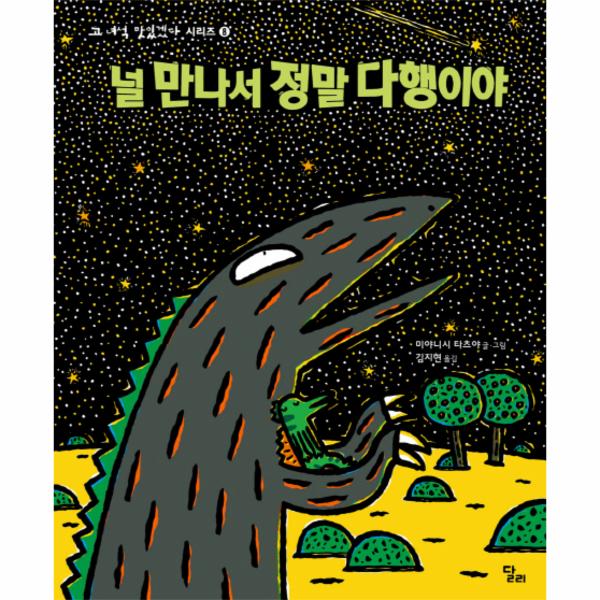 아픈 엄마를 위해 빨간 열매를 따러 간 아기 스피노사우루스는 그곳에서 굶주린 티라노사우루스를 만나 잡아먹힐 위기에 처합니다. 하지만, 때마침 일어난 엄청난 지진으로 땅이 갈라져 둘이 서 있던 곳은 바다 한가운데로 떠내려갑니다. 예기치 못하게 두 공룡은 둘만의 섬에 갇히게 되었죠. 배고픈 티라노사우루스는 당장 아기 스피노사우루스를 잡아먹으려 했지만 아기 스피노사우루스는 자신을 지금 잡아먹지 않으면 날마다 물고기를 잡아주겠다며 티라노사우루스를 설득합니다. 그렇게 외로운 섬에서 둘만의 생활이 시작되고, 하루는 서로의 이름을 얘기하며 이런저런 대화를 나누게 됩니다. 티라노사우루스는 아기 스피노사우루스가 그날 왜 빨간 열매를 구하러 이곳에 왔는지 사정을 듣게 되고, 딱한 아기 스피노사우루스를 따뜻하게 위로합니다. 아기 스피노사우루스 역시 엄마 걱정을 하는 자신을 다독이며 안심시키는 티라노사우루스에게 고마움을 느낍니다. “고맙습니다.” 아기 스피노사우루스에게 처음 들은 이 말은 차가운 티라노사우루스의 마음을 움직이기 시작합니다. 그 후로도 티라노사우루스는 아기 스피노사우루스에게 “멋있어요.” “재미있어요.” “상냥해요.”라는 말을 난생처음 듣고는 그 말들을 들을 때마다