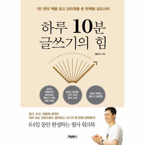 글쓰기에 정답은 없다. 날마다 보고, 듣고, 읽고, 생각하고, 느끼는 모든 것들이 글의 소재가 된다. 이러한 것들을 하루 10분만이라도 자신만의 방식으로 정리해 써내려가다 보면 어느새 삶이 풍성해질 것이다.