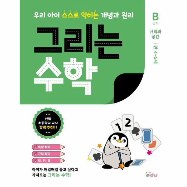 『그리는 수학』은 누리과정 <수학적 탐구하기> 4가지 영역을 분석하여 아이 스스로 수학의 개념과 원리를 익히도록 만들어진 체계적이고 과학적인 유아 수학 교재이다. 도형으로 시작하여, 수를 배우고, 규칙과 공간으로 추론 능력을 기르고, 연산을 통해 수의 활용을 배울 수 있도록 구성이 되어 있다. 또한 최신 개정된 수학 교과과정까지 반영한 완벽한 유아 수학 교재이다.