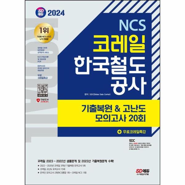 코레일 한국철도공사 합격을 위해 SD에듀에서는 채용을 대비하여 코레일 한국철도공사 맞춤형 문제로 구성한 『2024 최신판 SD에듀 코레일 한국철도공사 NCS 기출복원&고난도 모의고사 20회+무료코레일특강』을 출간하였다. 상세한 해설로 혼자서도 학습이 가능하도록 하였으며, 코레일 한국철도공사 온라인 모의고사를 무료로 응시할 수 있는 쿠폰을 발급하여 코레일 한국철도공사 문제 유형에 대한 연습과 함께 자신의 실력을 최종 점검할 수 있도록 하였다.