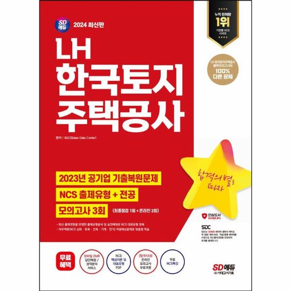 『2024 최신판 SD에듀 LH 한국토지주택공사 NCS+전공+최종점검 모의고사 3회+무료NCS특강』는 2024년 LH 한국토지주택공사 채용 대비 기본서이다. 공사공단 최신기출유형을 파악할 수 있도록 2023년 주요 공기업 NCS 및 전공 기출복원문제를 수록하였으며, 직업기초능력 출제유형분석 및 실전예제, 직무역량 적중예상문제를 통해 필기전형에 대비할 수 있도록 하였다. 또한, 최종점검 모의고사를 수록하여 시험 전 실전연습을 할 수 있도록 하였으며, LH 한국토지주택공사 채용 가이드와 면접 기출질문을 통해 채용의 모든 과정을 대비할 수 있도록 하였다.