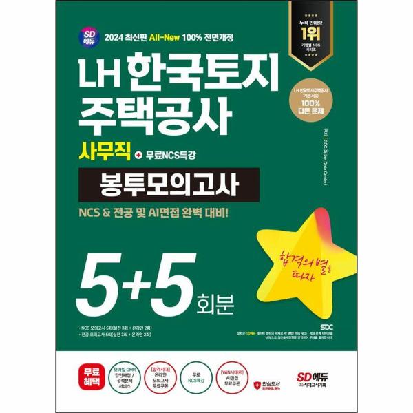 한국토지주택공사 필기시험 합격을 위해 SD에듀에서는 2024년 채용을 대비하여 한국토지주택공사 최신 필기전형을 반영해 맞춤형 문제로 구성한 『2024 최신판 SD에듀 All-New LH 한국토지주택공사 사무직 NCS&전공 봉투모의고사 5+5회분+무료NCS특강』을 출간하였다. 상세한 해설로 혼자서도 학습이 가능하도록 하였으며, 온라인 모의고사를 무료로 응시할 수 있는 쿠폰을 제공하여 한국토지주택공사 문제 유형에 대한 연습과 함께 자신의 실력을 최종 점검할 수 있도록 하였다.