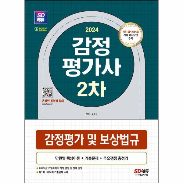 이 도서는 감정평가사 2차 시험을 대비하기 위한 도서이며, 효율적으로 감정평가사 2차 이론을 학습할 수 있도록 분석·정리하여 구성한 도서입니다. 2023년 10월까지의 최신 개정법령 및 판례를 반영한 감정평가사 2차 시험의 ‘핵심이론’을 수록하였으며, 각 장의 절별로 목차를 정리·수록하여 학습 방향을 알 수 있게 하였습니다. 또한, 본문에 기출된 내용을 표시하여 중요도를 파악할 수 있도록 하였습니다. 도서의 부록으로 ‘감정평가 및 보상법규 관련 법령’을 수록하였으며, ‘기출문제(제34회~제1회’와 ‘출제영역분석표’를 수록하여 기출 유형을 파악할 수 있도록 하였고, 답안 작성 시 참고할 수 있도록 최신 기출문제의 ‘예시답안’을 수록하였습니다. 도서 뒷면에 수록된 실제 시험과 유사한 양식의 주관식 답안지도 활용해보시기 바랍니다. 도서에 대한 유료 동영상 강의를 제공하니 활용해 보시길 바랍니다(sdedu.co.kr. 감정평가사 시험을 준비하는 수험생 여러분의 합격을 기원합니다.
