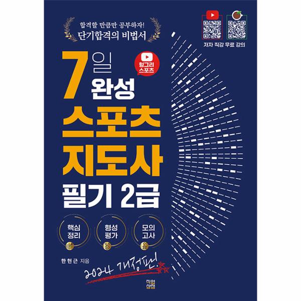 현직 체육 교사로서 가지고 있는 다양한 정보와 노하우를 담으려고 노력하였습니다. 핵심만 담으려 보니 다소 부족한 부분이 있을 수도 있지만 ‘단시간에 합격‘이라는 목표 아래 여러분께서 느끼실 공부의 난이도나 학습량을 끊임없이 고려하여 가장 짧은 시간에 가장 효율적으로 준비하실 수 있도록 교재와 강의를 구성하였습니다. 저와 함께 가장 효율적이고 합리적으로 준비하셔서 스포츠지도사 시험에 꼭 합격하시길 바라겠습니다. 감사합니다.