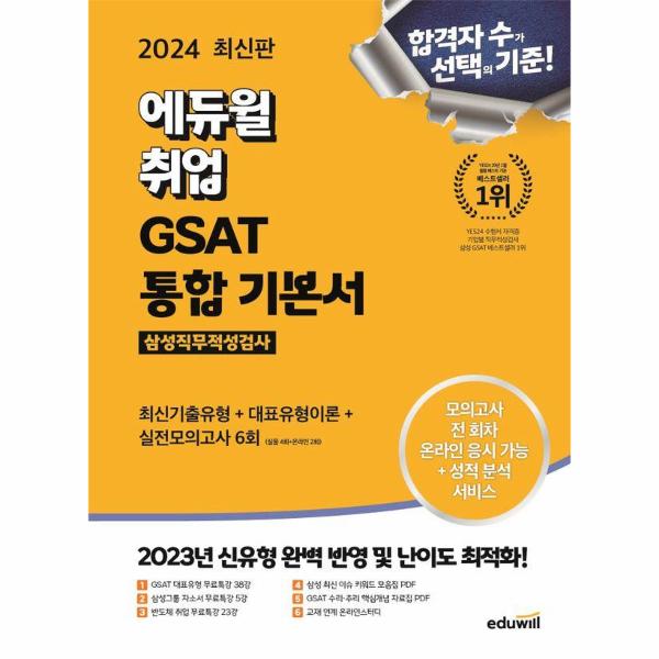 GSAT 온라인 필기시험의 스탠다드로 자리잡은 수리/추리 영역으로만 실전모의고사를 구성하였으며 이 중 1회는 학습에 자신감을 심어줄 수 있는 자존감 상승 회차로 구성하였다. 또한 실전모의고사를 모두 온라인으로 응시할 수 있도록 전 회차 온라인 응시 서비스를 제공하여 온라인 응시 환경에서도 실전처럼 연습할 수 있도록 하였으며, 여기에 성적분석 서비스까지 제공하여 자신의 위치를 가늠할 수 있도록 하였다. 추가적으로 온라인모의고사 2회분을 더 제공하여 충분한 연습이 가능하도록 하였다.
