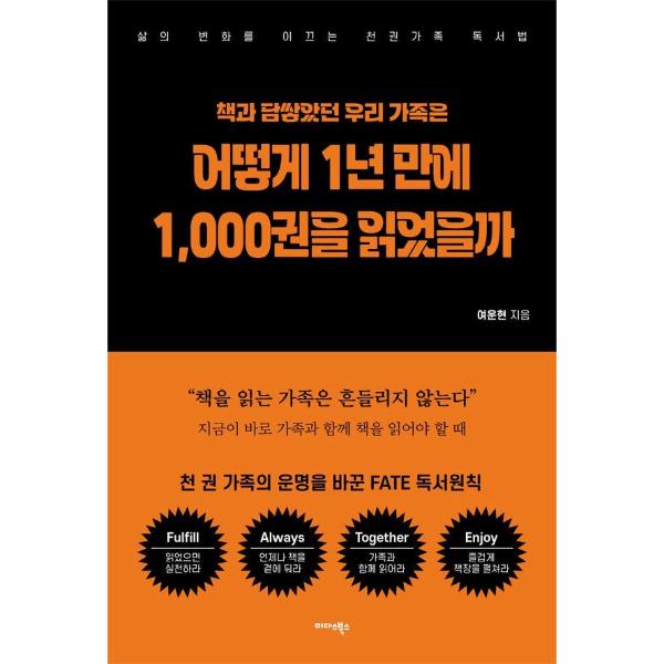 직장도 다녀야 하고 집안일도 챙겨야 해서 계속 책만 읽을 수는 없다. 하지만 언제나 책에 관한 관심을 놓지 않는 것, 시간을 정해 가족과 함께 책을 읽고 매일의 작은 틈마다 책 읽는 시간을 끼워 넣어 하루를 채워나가는 것. 이것이 바로 ‘천 권 가족 FATE 독서원칙’의 두 번째 원칙 ‘언제나 독서’이다.