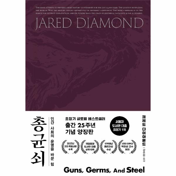 인류 역사에 대한 혁신적 통찰을 담은 세계적 명저 《총, 균, 쇠》가 소장용 고급 양장판으로 새롭게 출간되었다. 이 책은 문화인류학에서 역사, 과학, 미래 전망까지 학문의 경계를 넘나드는 위대한 지성 재레드 다이아몬드의 대표작이다. 역사에 대한 기존의 통념을 뒤집고 문명의 생성과 번영을 조망하는 새로운 관점을 제시해 1998년 퓰리처상을 수상했다.