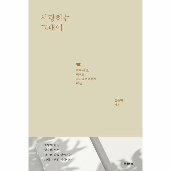 1.3.60이라는 숫자로 집약되는 이 책은 다니엘을 비롯해 오래 전 성인들이 하나님께 하루 세 번 기도한 것처럼, 하루에 세 번 일상의 순간들을 멈추고 하나님의 음성 듣기 60일 프로젝트이다. 60일은 습관 형성의 최소 기간인데, 하루에 세 번 이 습관을 지속하면 60일의 기간보다 훨씬 더 자주 그리고 깊게 그분의 음성을 들을 수 있을 것이다. 저자 임은미 선교사는 매일 새벽 묵상을 하고 그분의 음성을 듣는 영적 습관을 수십 년째 지키면서, “사랑하는 그대여”라고 부르는 그 음성을 들으며 일상의 시간을 내어 맡기도록 돕는 목회자이다. ‘그대’는 ‘그리스도의 대사’라는 뜻으로 저자가 새벽마다 말씀을 묵상하고 나눔을 하는 성도들을 부르는 말이기도 하다.
