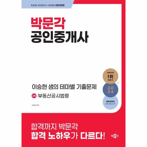 [2024 박문각 공인중개사 이승현 샘의 테마별 기출문제 2차 부동산공시법령]은 2024년 제35회 공인중개사 자격시험을 준비하는 수험생 여러분들에게 올바른 학습방향을 제시하고 효율적인 학습을 돕고자 출간되었습니다. 시험에 자주 출제되는 쟁점 내용들을 모두 정리하였고, 출제가능성이 높은 기출문제들을 수록하여 효율적인 학습이 가능합니다.