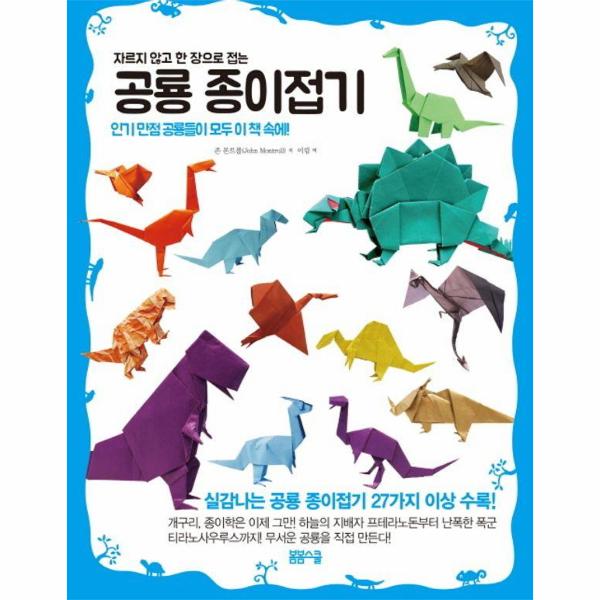 〈자르지 않고 한 장으로 접는 신화동물 종이접기〉에는 익룡과 육식공룡, 초식공룡 중 인기 있는 공룡 캐릭터 27종 이상이 수록되어 있으며 각 공룡에 대한 전문가의 친절한 설명까지 첨부되어 공룡 상식에도 많은 도움을 준다.