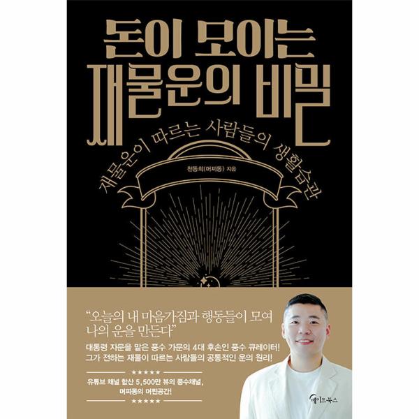 이 책은 총 5장으로 구성된다. 1장 ‘운의 진실’에서는 우리 옆에 항상 존재했지만 알아차리지 못한 운의 진실에 대해서 확실하게 짚어본다. 이 책에서 말하는 12가지 운의 진실을 습득해 잘 살게 되는 기초공사를 부지런히 해놓는다면 재물운을 확실히 내 옆에 오래도록 머물게 할 수 있을 것이다. 2장 ‘공간 운’에서는 내가 있는 공간에서 운을 끌어올리는 법을 알려준다. 공간은 모든 운적인 교감이 이루어지는 곳이기에 이곳에서 좋은 운을 쌓는 것이 매우 중요하다. 집 안에 죽은 공간 살리는 법, 재물운을 위해 지금 당장 청소해야 할 공간, 1인 가구를 위한 풍수 인테리어 등 구체적인 사례를 통해 좋은 운이 깃드는 좋은 공간을 만들 수 있도록 방법을 제시하고 있다.