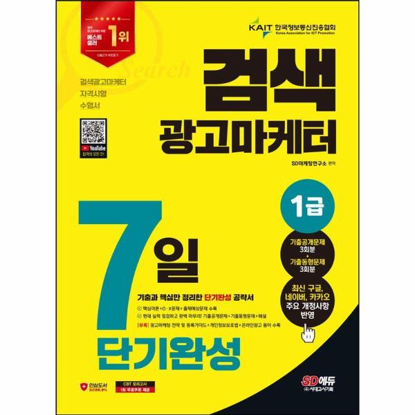검색광고마케터 자격증의 경우, 실기 시험이 없기 때문에 독학으로 준비하기 괜찮은 자격증입니다. 이에 SD마케팅연구소는 검색광고마케터 1급 자격증을 쉽고 빠르게 취득하는 데에 중점을 두고 본서를 집필했습니다. 학습 결과를 효과적으로 평가해 볼 수 있는 다양한 문제를 수록했습니다. 출제경향에 맞춰 이론은 압축하여 정리하였고 챕터 별로 O · X문제와 출제예상문제를 넣어 공부한 내용을 복습해 볼 수 있도록 했습니다. 또한 협회에서 공개한 기출문제를 상세한 해설과 함께 수록하고, 2023년 시험 출제 경향을 분석하여 복원한 기출동형문제 3회분을 추가 수록하였습니다. 구글, 네이버, 카카오 검색광고 마케팅 추천전략과 등록 및 심사가이드, 개인정보보호법과 온라인광고 용어 사전을 정리하여 본서의 마지막 부분에 부록으로 수록하였습니다. 본서로 학습하는 모든 분들이 가장 쉽고 빠르게 검색광고마케터 자격증을 취득하시기를 기원드립니다.