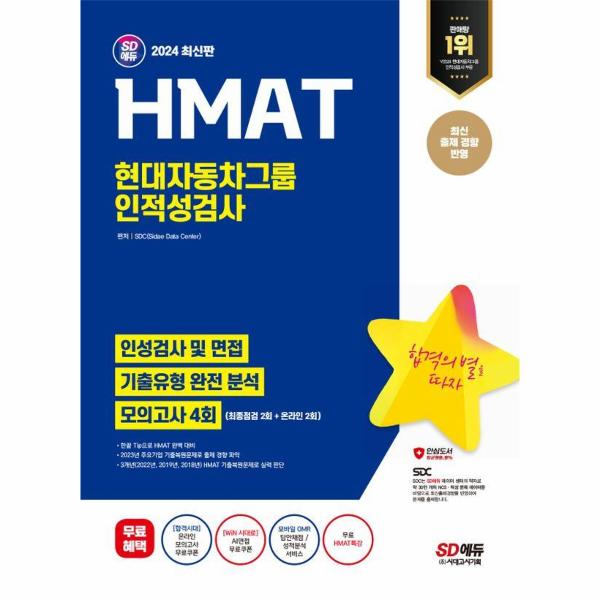현대자동차그룹 합격을 위해 SD에듀에서는 2024년 채용을 대비하여 현대자동차그룹 HMAT 맞춤형 문제로 구성한 『2024 최신판 SD에듀 HMAT 현대자동차그룹 인적성검사 최신기출유형+모의고사 4회+무료HMAT특강』을 출간하였다. 상세한 해설로 혼자서도 학습이 가능하도록 하였으며, 온라인 모의고사를 무료로 응시할 수 있는 쿠폰을 제공하여 HMAT 문제 유형에 대한 연습과 함께 자신의 실력을 최종 점검할 수 있도록 하였다.