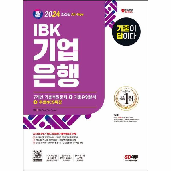 IBK기업은행은 인재를 채용하기 위해 필기시험을 시행하여 지원자가 업무에 필요한 역량을 갖추고 있는지 평가한다. 이에 SD에듀에서는 IBK기업은행 필기시험을 준비하는 수험생들에게 좋은 길잡이가 되어 주고자 『2024 최신판 SD에듀 All-New 기출이 답이다 IBK기업은행 필기시험 7개년 기출+무료NCS특강』을 출간하게 되었다.