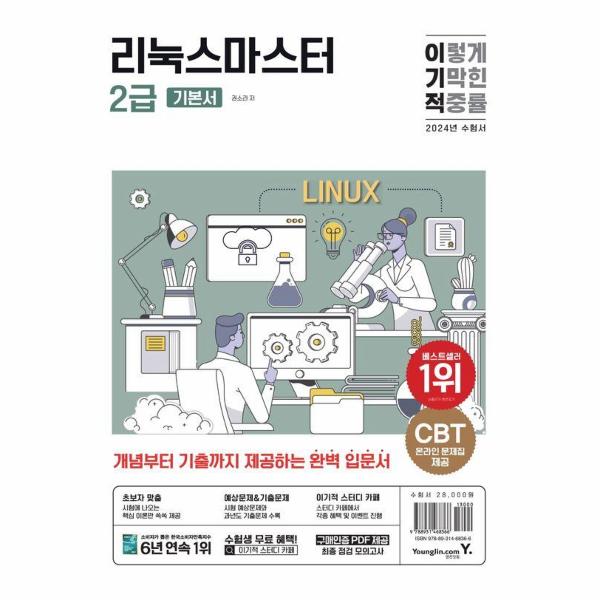 리눅스마스터 2급 2024년 도서가 이기적에서 출간되었습니다. 리눅스마스터 2급을 취득하기 위해 필요한 최대한의 것을 전부 제공해 드립니다. 시행처에서 발표한 출제기준에 완벽하게 맞는 핵심이론 내용과 이론을 공부한 뒤 바로 문제를 풀어볼 수 있는 구성은 수험생들이 스스로 어떤 내용을 더 공부해야 하는지, 어떤 내용에 더 집중해야 하는지 확인할 수 있도록 도와드릴 것입니다. 리눅스마스터 2급 합격을 영진닷컴에서 응원합니다!