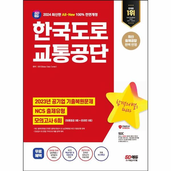 한국도로교통공단 필기시험 합격을 위해 SD에듀에서는 2024년 채용을 대비하여 한국도로교통공단 최신 필기전형 맞춤형 문제로 구성한 『2024 최신판 SD에듀 All-New 한국도로교통공단 NCS+최종점검 모의고사 6회+무료NCS특강』을 출간하였다. 상세한 해설로 혼자서도 학습이 가능하도록 하였으며, 온라인 모의고사를 무료로 응시할 수 있는 쿠폰을 제공하여 한국도로교통공단 문제 유형에 대한 연습과 함께 자신의 실력을 최종 점검할 수 있도록 하였다.