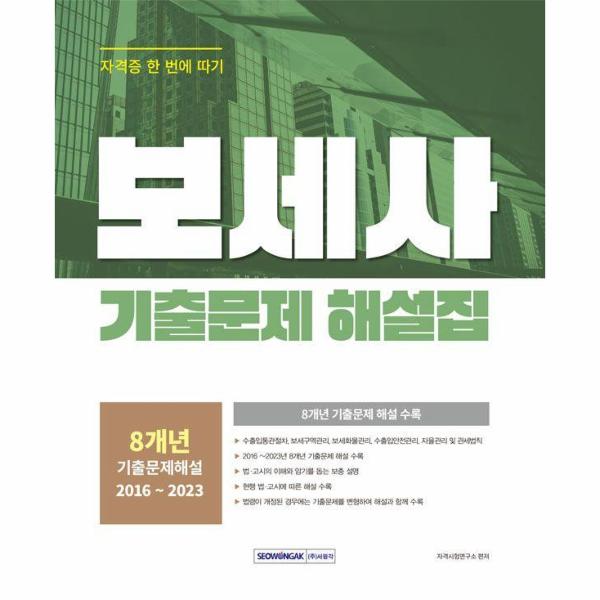 본서는 보세사 시험을 준비하는데 있어 2016 ~2023년까지 총 8개년 기출문제 해설을 수록하였습니다. 자주 법령이 바뀌는 특성에 따라 법령이 변경된 문항은 적절히 변형하여 해설과 같이 수록하였으며 공개된 기출문제의 해설을 상세하게 수록하여 빠르게 이론적인 내용도 확인할 수 있도록 수록하였습니다. 반복적이고 충분한 해설은 학습자분들이 내용을 쉽게 숙지할 수 있도록 하였습니다.