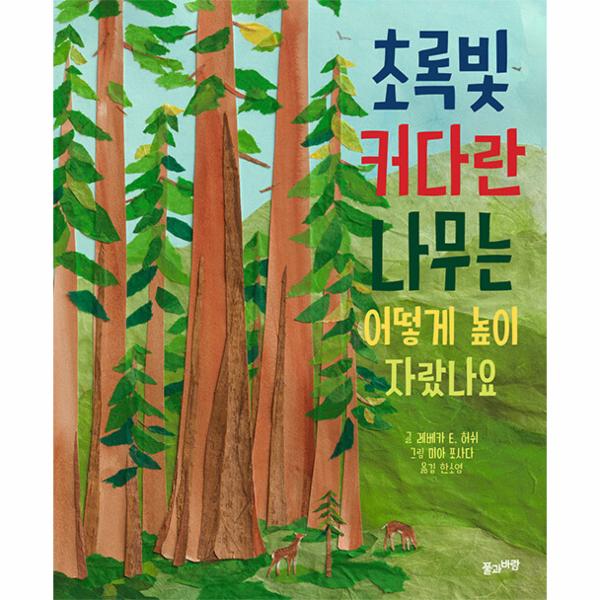 오늘날 가장 높이 자란 나무는 ‘히페리온’으로도 불리는 코스트 레드우드로, 그 키가 무려 115.9미터나 됩니다. 히페리온이라는 이름은 그리스 신화에 나오는 거인족 티탄 가운데 한 명의 이름을 따온 것이죠. 엄청난 높이와 두께를 지닌 거대한 나무들로 가득한 숲은 어린이의 상상력을 마구 자극합니다. 이 책은 흙빛 갈색과 에메랄드빛 녹색의 선명한 색상을 과감한 구도로 사용해 자칫 정적으로 느껴질 수 있는 나무를 활기차게 보여 줍니다. 다양한 구도와 사실적 질감이 나무의 높이와 위엄을 고스란히 담아내고 있지요. 책을 보며 어린이들은 우리 생태계를 든든히 받치는 놀라운 나무에 대해 경탄하며 우리 곁의 나무를 새로이 바라보게 될 것입니다.