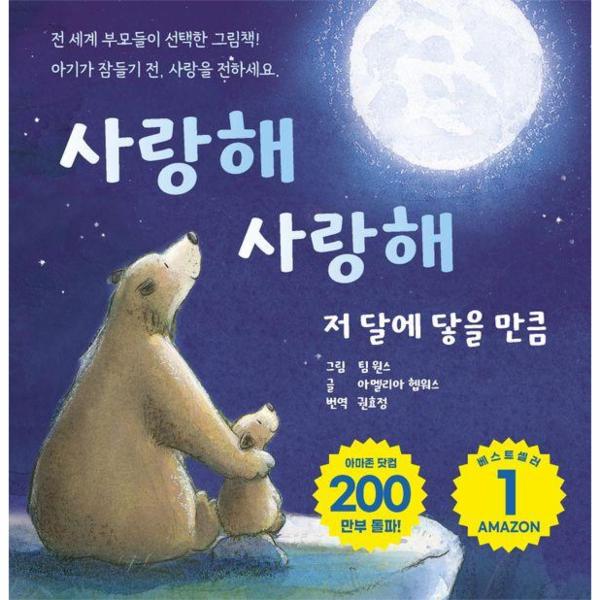 현재 세계에서 가장 많이 판매되고 있는 잠자리에서 읽어주는 그림책으로, 아마존닷컴 베스트셀러 1위에 200만부 판매를 돌파한 화제의 그림책 『사랑해 사랑해 저 달에 닿을 만큼』이 유나출판사에서 출간되었습니다. 『사랑해 사랑해 저 달에 닿을 만큼』에는 엄마 곰과 아기곰이 서로에게 전하는 사랑의 이야기가 간결하고 따뜻한 문장으로 이루어져 있습니다. 이 책은 자녀에게는 사랑과 안식을 전해주며, 부모와 자녀 사이의 소중한 순간을 만들어 줍니다. 그리고 그림과 텍스트가 조화를 이루어 이야기를 풍부하게 표현하며, 읽는 동안 마음이 따뜻해지는 감성적인 여정을 선사합니다.