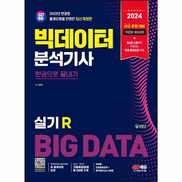 SD에듀의 최신개정판 〈2024 빅데이터분석기사 실기(R 한권으로 끝내기〉를 찾아주신 독자님께 감사의 마음을 전합니다. 본서는 한국데이터산업진흥원의 출제기준을 100% 반영하였으며, 2021년부터 2023년까지 총 6회분의 전개년 기출문제를 복원하여 실었습니다. 또한, 최신 출제경향을 반영하여 이론을 수록하였으며, 코드와 그래프를 ALL COLOR로 구성하여 보다 편리하게 보실 수 있도록 하였습니다.
