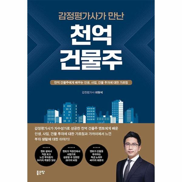 이 책의 저자는 ‘천억 건물’의 ‘건물주’를 만나 새로운 경험을 하고 시야가 넓어졌다고 한다. 천억 자산이 있다면 매달 들어오는 순수익이 얼마나 되는 것일까. 상상하기도 힘든 자산이다. 저자는 천억 건물주 멘토를 만나 인생과 사업, 건물 투자에 대해 배웠다고 한다. 감정평가사로 재직 중인 만큼 건물에 대해 다가오는 느낌이 남달랐을 것이다.