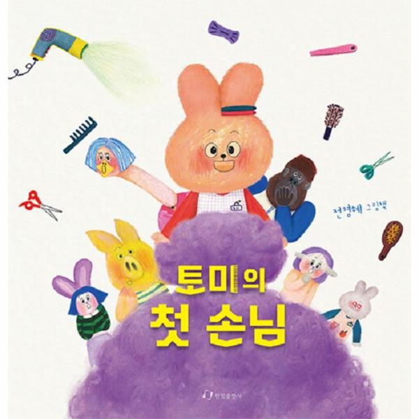 『토미의 첫 손님』은 머리 자르기 난관을 극복해 낸 꼬마 양 탄이의 이야기를 다루고 있다. 미용실 입구에서 한 발짝도 떼지 않고 주저앉아 울던 탄이는 며칠 사이 멋지게 머리 자르기에 성공한다. 탄이 마음의 문을 연 첫 시작은 토미였다. 엄마를 기다리며 미용실 이곳저곳을 둘러보던 탄이는 실수로 토미의 빗자루에 머리카락이 걸리고 만다. 놀라고 아팠을 테지만 상냥한 토미가 머리카락을 조금 잘라 준 덕분에 빗자루에서도 벗