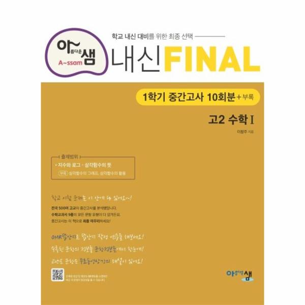 - 1학기 중간고사 10회분과 부록에 수록된 모든 문항에 대하여 내용영역, 난이도 등의 정보를 제공하였습니다. 또한 어려운 문항에는 동영상 강의를 제공하였고 이를 표시하였습니다. 동영상 강의는 문제와 해설의 QR코드로 접속하실 수 있습니다.