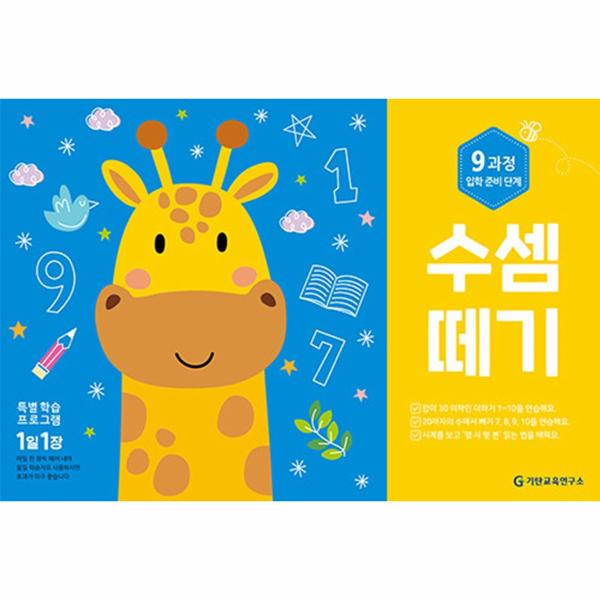 [수셈떼기]는 간단한 기본 수 세기부터 복잡한 두 자리 수 덧셈과 뺄셈에 이르기까지 총 4단계, 10과정이 체계적으로 구성되어 있습니다. ‘기초 단계’(1~2과정에서는 선 긋기를 통한 운필력 기르기를 시작으로 1부터 20까지의 기초적인 수 세기를 익히고, ‘연습단계’(3~5과정에서는 간단한 더하기를 연습하며 1부터 100까지의 수를 배우고, ‘완성 단계’(6~8과정에서는 앞 과정에서 배운 것을 토대로 조금 더 복잡한 덧셈을 익히고 뺄셈의 원리를 이해합니다. 그리고 마지막 ‘입학 준비 단계’(9~10과정에서는 덧셈과 뺄셈의 반복 훈련을 통해 계산력을 기를 수 있어요.