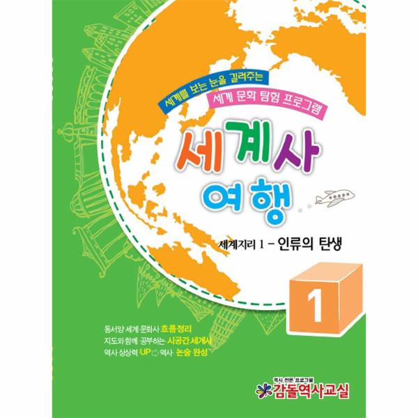 <세계사여행> 교재는 초등학교 학생들이 한국사 과정을 끝내고 세계사에 재미있게 접근할 수 있도록 기획된 초등 세계사 교재입니다. 초등학교 교과과정에 세계사 과목이 따로 있진 않지만 6학년 사회 교과서에서 세계문화를 배우고, 중학역사의 세계사는 사전 배경지식 없이 들어가면 너무 어렵기 때문에 초등 과정에서 세계사의 기본을 다져 놓아야 합니다. 초등 과정에서 어려울 수 있는 복잡한 내용은 과감히 덜어내고 세계사에 대한 흥미를 북돋고 세계사의 중요한 줄기를 문화를 중심으로 이해할 수 있도록 구성되어 있습니다. 초등 6학년 사회 과목에서 배우는 세계문화를 심도 있게 배우고, 중학역사의 세계사 과정을 대비하는 입문 교재로, 인류의 탄생부터 현대사까지 총9권으로 구성되어 있습니다.