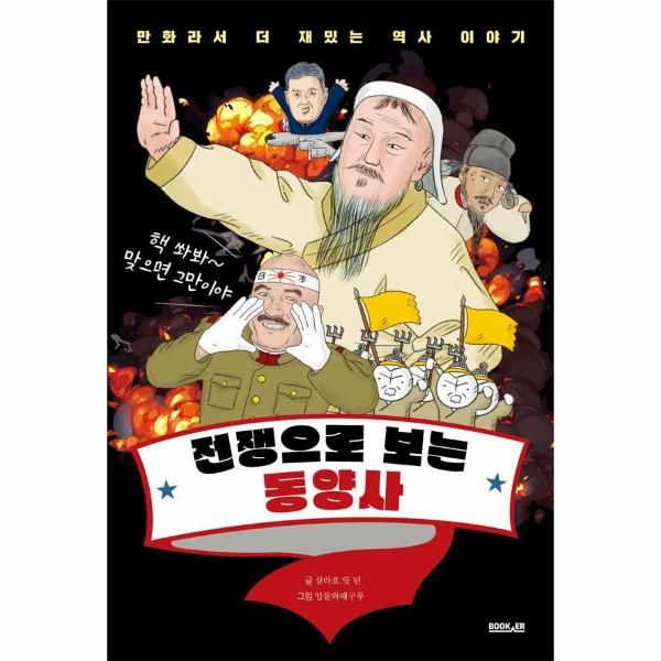 《전쟁으로 보는 동양사》는 ‘만화라서 더 재밌는 역사 이야기’ 시리즈의 두 번째 책이다. 이해를 돕고 재미를 더하기 위해 인터넷 밈과 블랙 유머를 적극적으로 활용했고, 역사적 사실과 고증 또한 꼼꼼히 챙겼다. ‘FM코리아 미스터리 갤러리의 아이돌’ 살라흐 앗 딘과 ‘터번 쓰고 다니는 괴
