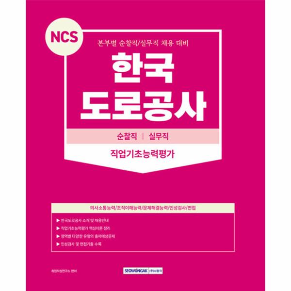 본서는 한국도로공사 순찰직(안전순찰원, 실무직(사무원, 상황관리원 필기전형에 대비하기 위한 기본서이다. 직업기초능력평가 과목인 의사소통능력과 조직이해능력, 문제해결능력 3가지 영역의 핵심이론과 풍부한 양의 출제예상문제를 수록하여 충분한 연습이 가능하도록 하였다. 매 문제마다 상세한 해설을 달아 효율적인 학습을 완성할 수 있다. 또한 인성검사와 면접기출을 함께 수록하여 마지막 순간까지 대비할 수 있도록 하였다. 한국도로공사 순찰직(안전순찰원, 실무직(사무원, 상황관리원 필기전형을 서원각과 함께 정복해 보자!