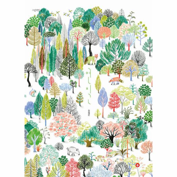 또 다른 종류의 작은 나무들이 이곳저곳 듬성듬성 싹을 틔웁니다. 그 나무들은 점점 자라더니 수많은 생명이 평화롭게 살아가는 숲을 이룹니다. 바람이 불어오자 숲에 사는 새들이 화려하게 날아오릅니다. 마치 평화와 생명의 잔치처럼 말이에요.