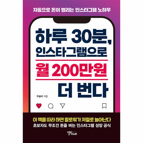 누구나 처음 인스타그램을 시작하면 이런저런 시행착오를 겪을 수밖에 없다. 원하는 결과를 얻기 위해선 어떤 게시물을 올려야 할지, 팔로워는 어떻게 늘려야 할지, 어떤 해시태그를 달아야 할지 헷갈릴 수밖에 없기 때문이다. 그러나 걱정하지 말자. 책, 《하루 30분, 인스타그램으로 월 200만원 더 번다》는 인스타그램 성공을 위한 당신만의 고속도로다. 일단 출발하기만 한다면, 당신은 누구보다도 빠르게 목적지에 다다르게 될 것이다.
