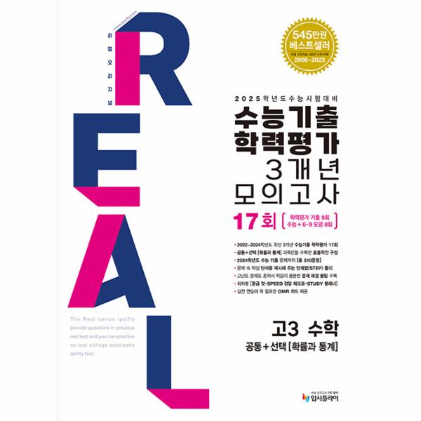 2024학년도 불수능 기출 문제를 포함해 최신 3개년 『수능기출 학력평가』 문제를 총 17회 수록했습니다. 특히 수학 영역 『공통+확률과 통계』만 수록해 수능에서 내가 선택한 과목만을 집중 학습할 수 있어 효과가 높습니다.
