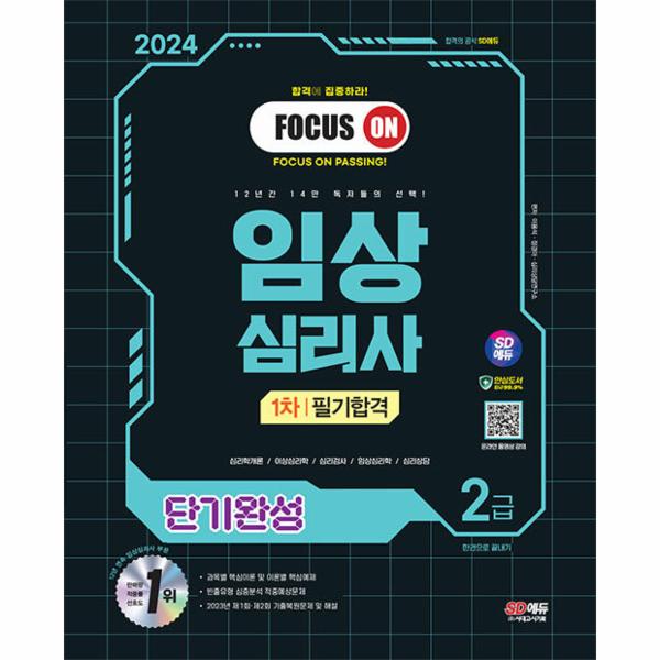 특히 임상심리사는 개별 심리센터를 개업하여 상담서비스를 제공하는 것도 가능하기 때문에 상대적으로 연령 등의 제한 없이 오래 종사하는 것이 가능한 직군입니다. 최근에는 다양한 심리 관련 지식을 알려주는 임상심리사들의 유튜브 채널이 많은 구독자의 관심을 얻으며, 그 활동 범위를 점점 더 넓혀가고 있기도 합니다. 이처럼 새로운 가능성으로 떠오른 임상심리사 자격시험을 준비하는 수험생분들을 위해, 본 교재에서는 그동안 축적된 임상심리사 2급 필기시험 기출문제를 모두 분석하였습니다. 이를 기반으로 충실한 기초학습이 가능한 과목별 핵심이론과 핵심예제, 실전을 대비할 수 있는 적중예상문제와 기출복원문제 그리고 각 문항에 대한 명쾌한 해설을 수록하였고, 이 교재만으로도 수험생 여러분이 임상심리사 2급 필기시험에 관한 모든 내용을 학습하실 수 있도록 구성하였습니다. 독자분들이 만들어주신 소중한 1위 자리에 걸맞은 교재가 되도록 최선을 다하여 개정·출간하였습니다. 본 교재를 선택하여 주신 독자분들 모두에게 진심으로 감사드립니다.
