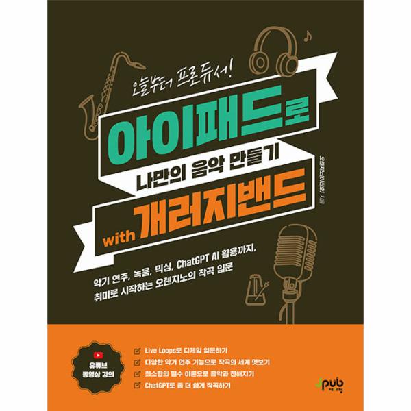 개러지밴드(GarageBand는 맥, 아이패드, 아이폰에서 무료로 사용할 수 있는 간편한 음악 창작 앱이다. 그러나 아무리 쉬워도 음악 창작이 난생처음이라면, 방대한 악기와 다양한 기능이 막연하게 느껴질 수 있다. 이 책은 집에서 방치 중인 아이패드로, 작곡이라는 새로운 취미 생활을 시작해 보고 싶은 여러분을 위해 준비했다. 먼저 개러지밴드의 인터페이스, 디제잉, 믹싱, 시퀀서 편집 기능을 배운 후 악기 연주를 녹음하고 편곡하는 법까지 따라 하며 자연스럽게 배울 수 있다. 끝으로 음악 이론을 잘 몰라도 인공지능 ChatGPT를 작곡에 활용하는 법을 살펴본다. 이제 손으로 터치하고 귀로 들으며 신나는 음악 창작에 도전하자.