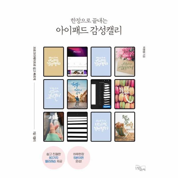 또한 이 책은 모음과 자음의 반복 연습 없이 바로 다섯 글자 이상의 단문부터 쓰도록 안내합니다. 종이 위에 쓰는 정통 캘리그래피라면 모음과 자음을 따로 연습하는 기본기가 중요하겠지만, 디지털 캘리그래피는 쉽게 수정. 보완이 가능하고 아이패드를 잘 다루기만 한다면 여러 방면으로 스스로 학습이 가능한 측면이 있기에 바로 단문과 장문 쓰기로 캘리에 입문하도록 구성하였습니다.