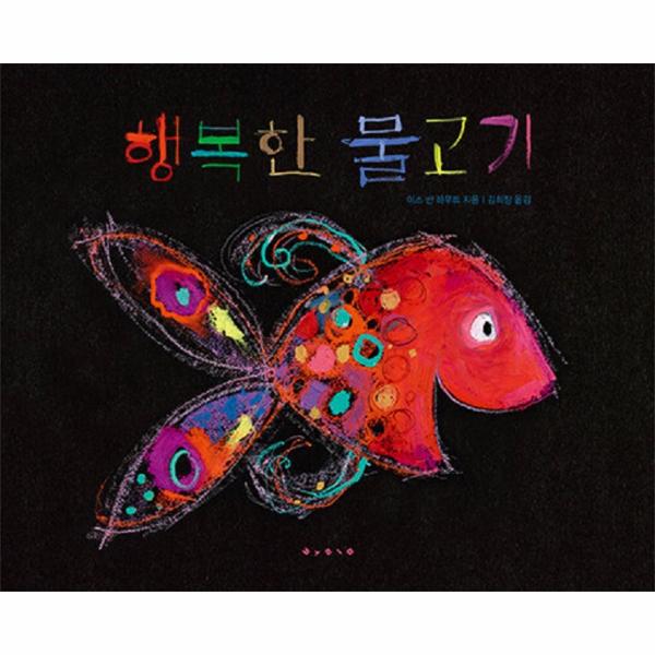 미스 반 하우트는 《행복한 물고기》를 이렇게 그렸다고 해요. 먼저, 작업한 모든 물고기 그림들을 벽에 겁니다. 벽에 걸린 물고기를 바라볼 때 물고기가 표현하는 감정을 작가 자신도 느낀다면 성공한 거예요. 하지만 어떤 물고기는 일주일 후에 보면 뭔가 부족해 보이지요. 그러면 버리고 새로 그립니다. 그렇게 몇 주를 지났는데도 여전히 벽에 걸려 있다면 마침내 그 물고기는 살아남습니다. 그렇게 이 책을 위해 수백 마리의 물고기를 그렸다고 합니다. 물고기도 물고기지만, 이 책의 또 다른 매력은 바로 글씨에 있습니다. 이 책의 글씨는 단순히 뜻을 전하는 글씨를 넘어 시각적으로 감정을 전달해요. 미스 반 하우트는 한글을 연구하고 연습해서 손글씨를 직접 썼답니다. 이렇게 완성된 그림과 글 속에 담긴 선명한 선, 아름다운 색채와 질감은 몇 번이고 다시 책장을 넘겨보게 합니다.