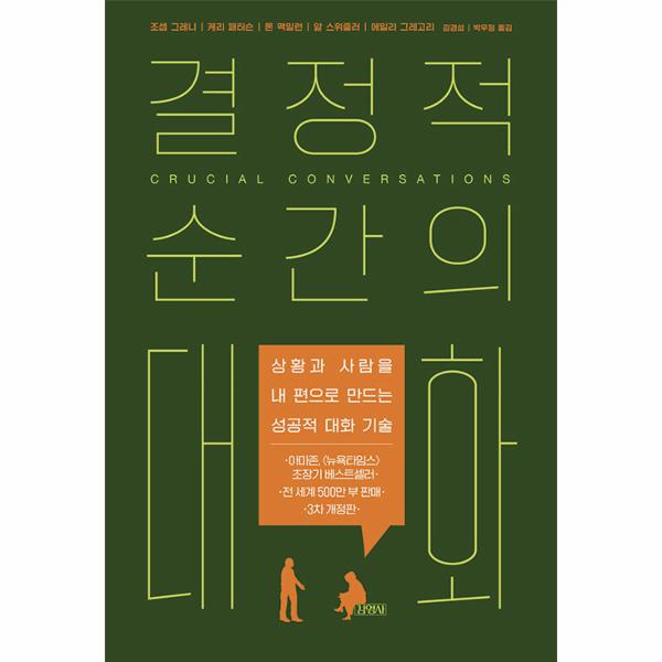 친구에게 빌려 간 돈을 갚으라고 독촉할 때, 배우자의 잘못을 지적할 때, 직장에서 업무에 관한 피드백을 할 때, 상대를 존중하면서도 솔직하게 생각을 공유하고 문제를 해결하려면 어떻게 대화해야 할까? 2002년 출간 이후 500만 독자들의 삶의 의지처가 되어온 대화법의 고전 《결정적 순간의 대화》(원제: Crucial Conversations에 그 답이 있다. 개정 3판은 정치적·사회적 견해 차이를 극복하는 법부터 온라인 매체를 효과적으로 활용하는 법까지 더 다양한 대화 주제와 소통 방식을 추가해 더욱 강력해졌다.