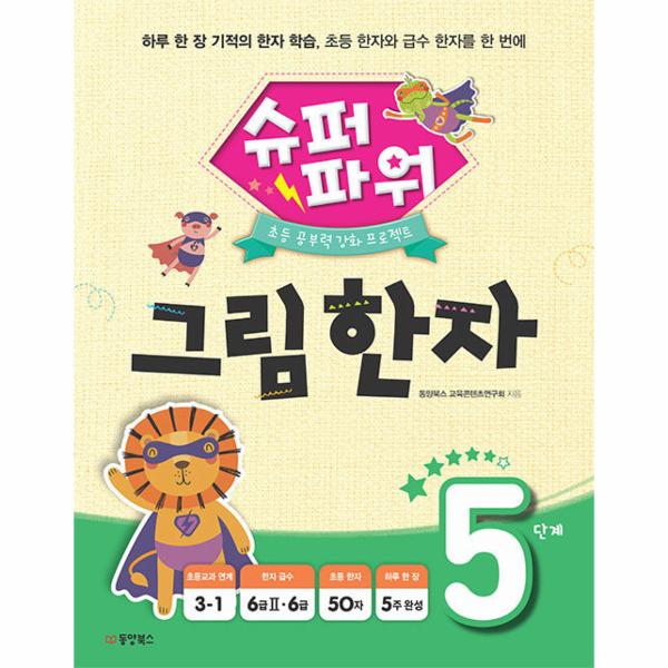 [슈퍼파워 그림 한자](전 6권은 한자 학습을 통해 교과 이해도를 높여 초등 공부력을 강화시키기 위한 시리즈로, 처음 한자를 접하는 학생들이 이미지를 통해 쉽게 한자를 배우는데 목표를 두고 이렇게 구성했습니다.