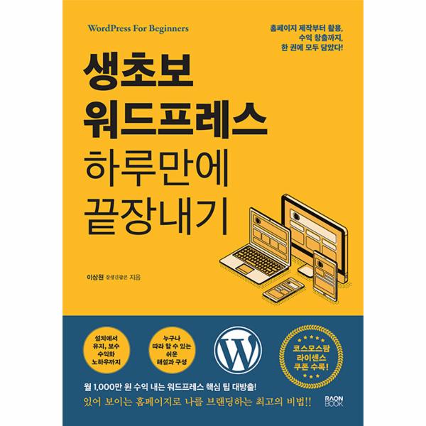 이 책 “생초보 워드프레스 하루만에 끝장내기”는 온라인 시장이 대세를 이룬 지 오래된 이 시대에, 개인의 브랜딩화, 인건비 최소화, 온라인 노출 극대화라는 세 가지 지상 과제 앞에 직면한 개인 창업 내지는 소규모 자영업자들에게 최고의 무기가 되어 줄 것이다.