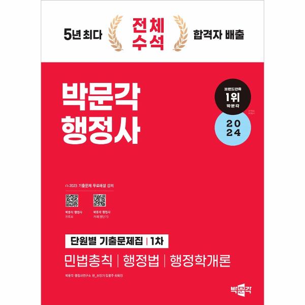 《2024 박문각 행정사 1차 단원별 기출문제집》은 2024년도 제12회 1차 행정사 자격시험을 준비하는 수험생을 위해 집필되었습니다. 민법총칙, 행정법, 행정학개론 세 과목의 11개년 기출문제를 단원별로 분류하여 모두 수록하였고, 모든 문제에 난도와 기출 회차, 기출 포인트를 표시하여 학습자 스스로 효율적인 학습이 가능하도록 하였습니다. 또한 풀이 TIP과 꼼꼼한 해설을 수록하여 놓치는 부분이 없도록 하였습니다. 기출문제집을 반복적으로 풀면서 이전에 배운 개념을 공고히 하다 보면 반드시 좋은 결과를 낼 것이라고 확신합니다. 행정사 시험을 준비하는 수험생들의 최종합격을 기원합니다.