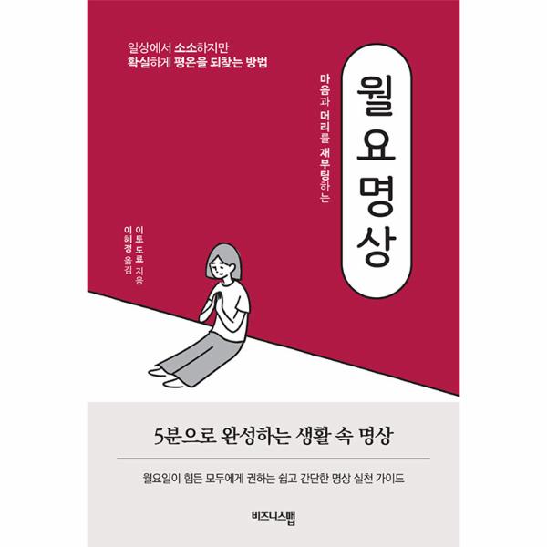 그렇다면 이 지긋지긋한 월요병으로부터 벗어날 수 있는 방법은 무엇일까? 저자 이토 도료는 바쁜 현대인들이 어디서든 짬을 내 쉽게 할 수 있는 명상을 통해 월요병의 굴레로부터 벗어날 수 있도록 돕는다. 월요일 아침 5분의 시간으로 호흡을