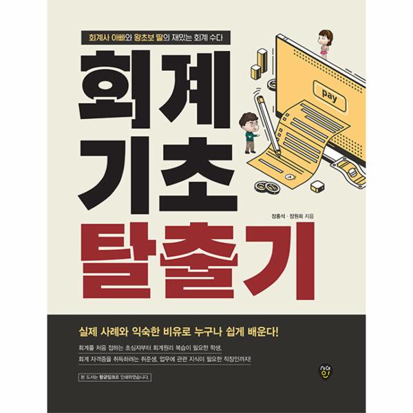 『회계기초 탈출기』는 자칫하면 딱딱하고 어렵게 느껴질 수 있는 회계학을 일방적 소통이 아닌 회계사 아빠와 회계를 처음 접하는 딸의 대화 형식을 빌려 친절하고 친근하게 설명하고 있습니다. 초심자로서 가질 수 있는 의문과 그 답변을 실제 사례와 익숙한 비유로 쉽게 담아내어, 회계에 대해 전혀 모르는 사람들도 편하게 읽으며 자연스레 배울 수 있도록 하였습니다. 또한, 구체적인 회계순환과정, 현재가치, 금융자산과 같이 회계를 배우는 사람들이 많은 어려움을 느끼는 부분까지 다루어 읽기는 쉽지만 내용은 결코 가볍지만은 않습니다. 이 책을 통해 회계가 어렵다는 편견이 사라지고 다음 단계를 위한 초석이 될 수 있기를 바랍니다. 감사합니다.